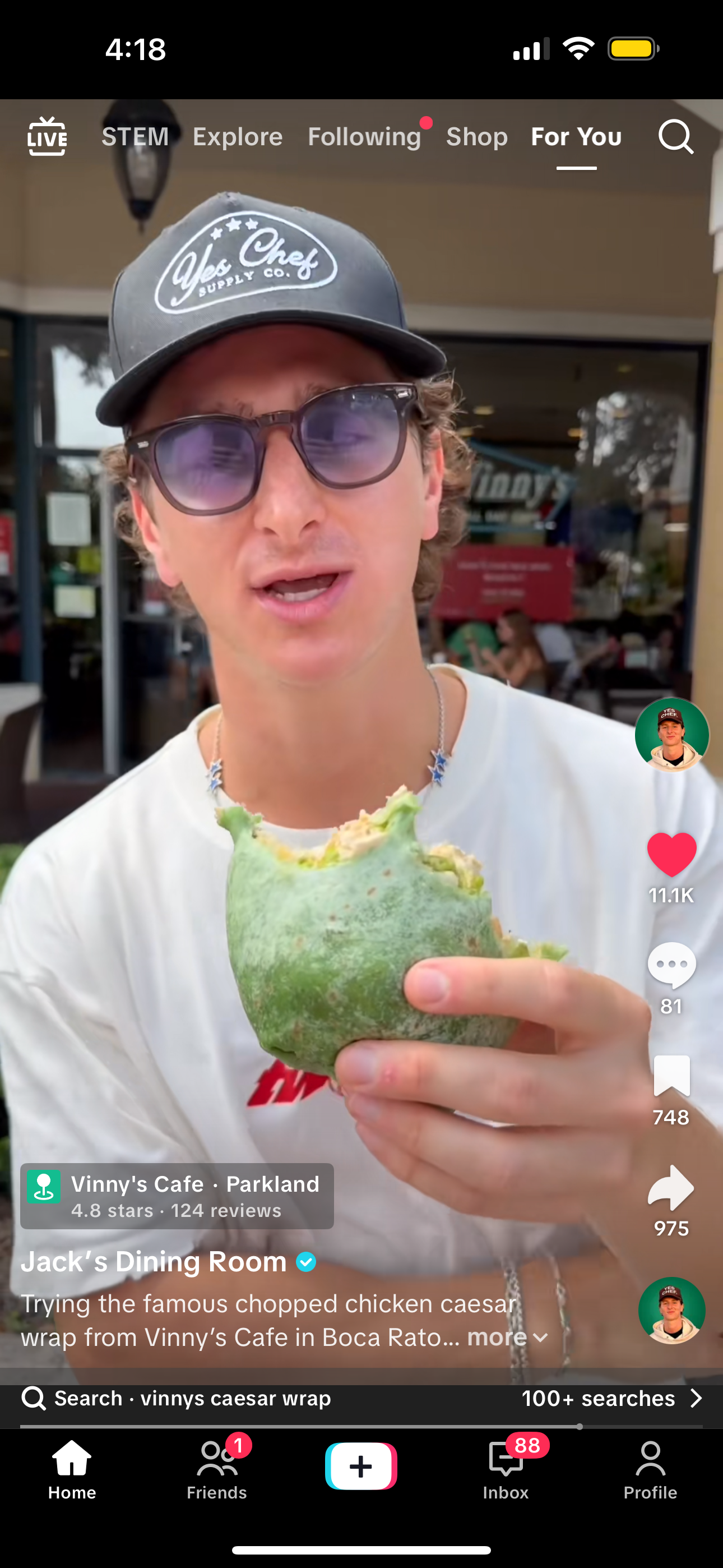 This is him trying the viral “chicken cesar wrap” at Vinny’s Cafe